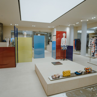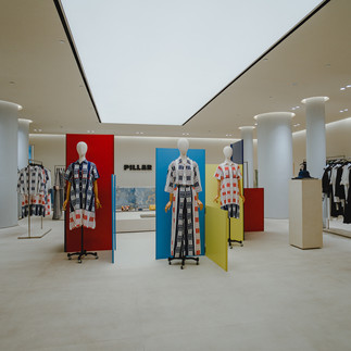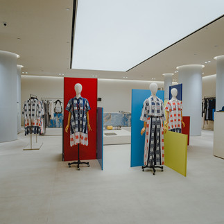 We have recently completed VM point design and production for this new capsule launch theme. Our team made colored partitions, with high and low squares to illustrate the patterns in this collection.
